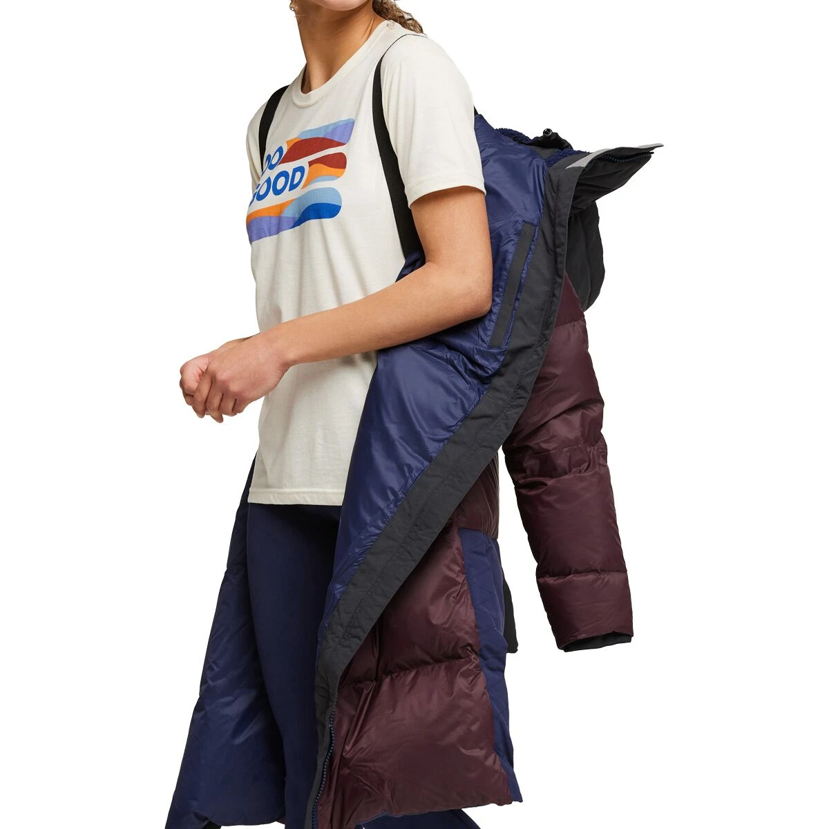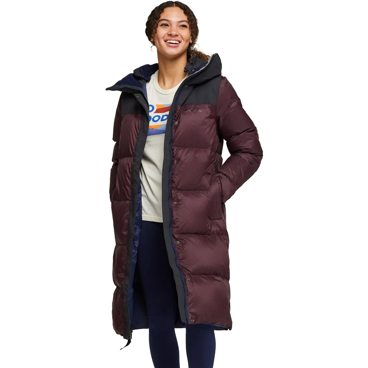 While the blizzard is seemingly blowing in from every direction, we wrap ourselves in warmth with the Solazo Down Parka. This extra-long winter coat keeps us safe from the storm, thanks to water-repelling ripstop and toasty down insulation. Side zips keep the parka close to our thighs for extra warmth, and when the sun returns, they open up to let heat out and allow our legs to move.