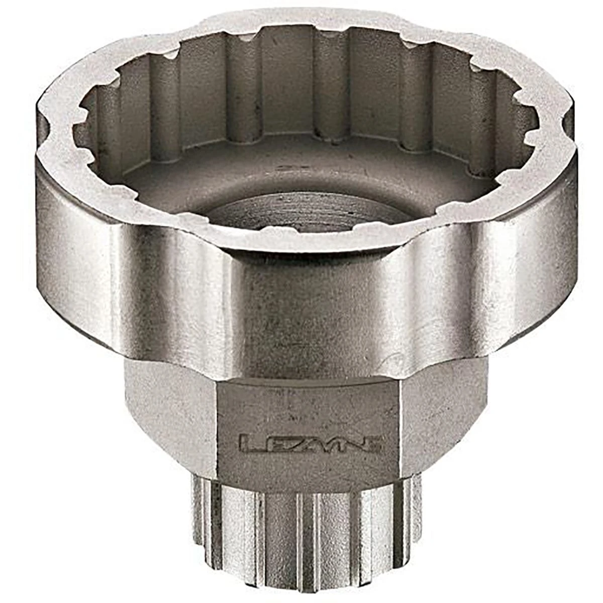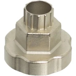 Two-way integrated external bottom bracket and cassette lockring tool. For use with 32mm CNC Rod or an adjustable wrench. Compatible with many popular external bottom brackets and cassette lockrings.