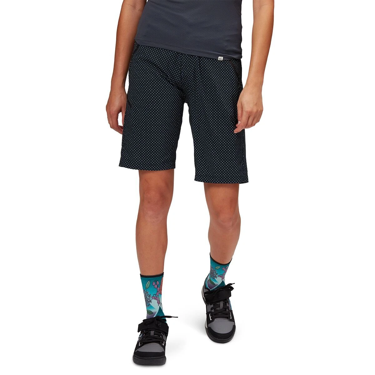 - Lightweight trail baggies with colorful design