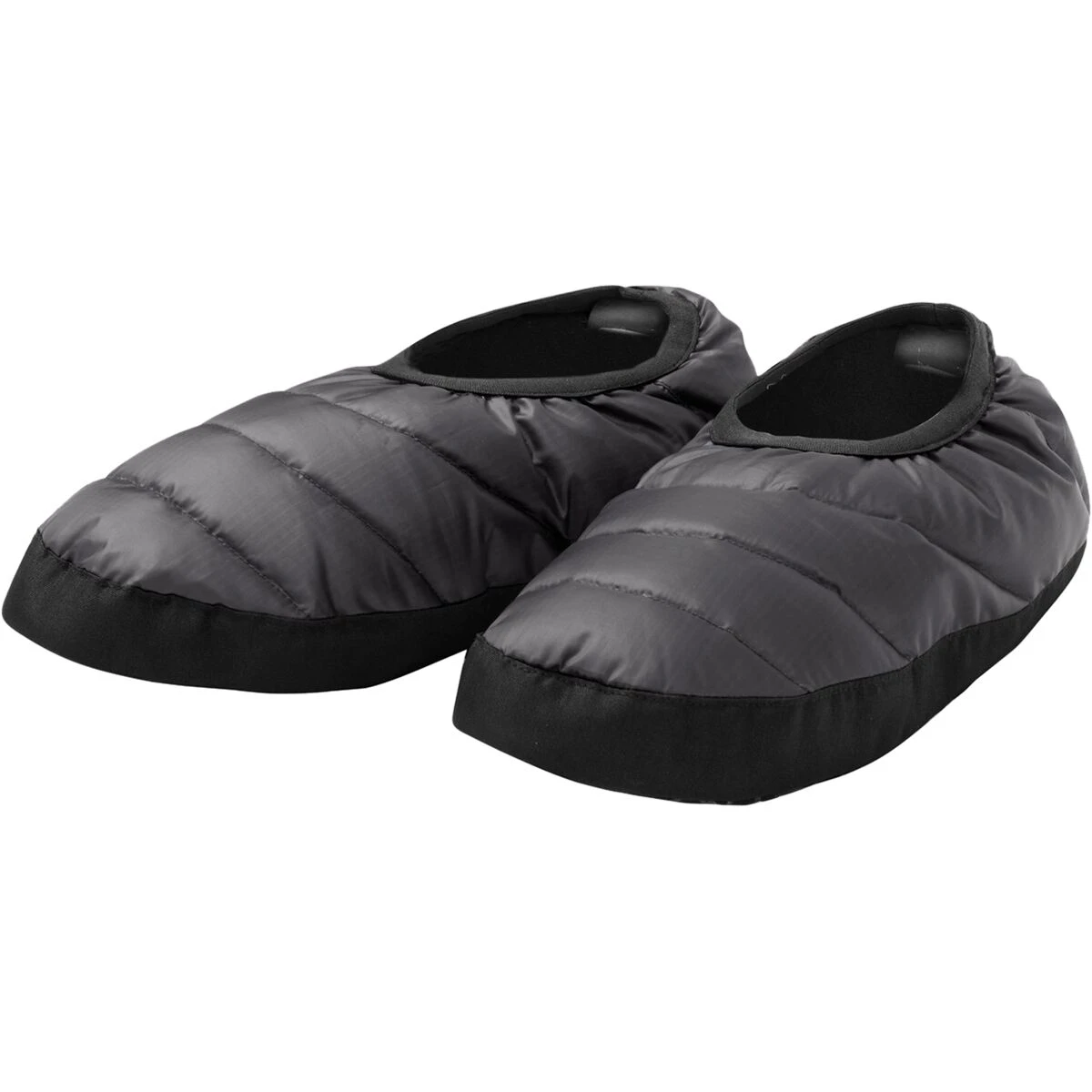 Getting comfortable shouldnt be a struggle. The Sierra Designs Down Slip-Ons are easy-on, easy-off slippers stuffed with 800-fill DriDown insulation for the coziest adventures away from home. Silicone soles and oxford sidewalls provide traction and durability when relaxing turns to roaming, and the long-lasting foam midsole provides lightweight support under foot. Plus, with PFC-free Durable Water Repellent (DWR) coating and an elastic cuff to keep moisture and drafts out, you can finally give the cold shoulder to cold feet.