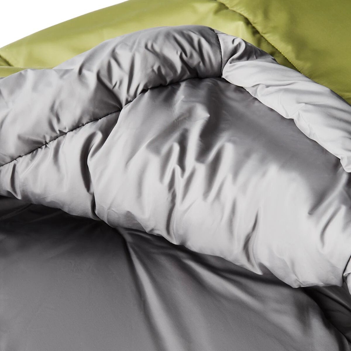 - Quilted insulation is rated for winter camping in as low as -18°F